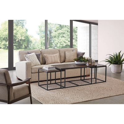 Bayless Marble Top Coffee Table Nesting Table Ethan Allen from www.ethanallen.com This small round coffee table offers. Vasagle end tables set of 2, side tables with storage shelf, slim night tables, steel frame, for living room, study, bedroom, industrial, rustic brown and black ulet272b01 4.4 out of 5 stars 298 $57.99 $ 57. After many requests, we decided to offer the smaller size in our set of maxwell nesting tables as a single to fit tighter spaces or to nest alongside your current set for even more serving area.